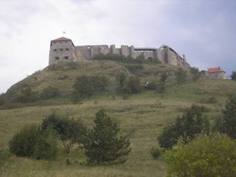 městem rozsáhlá hradní zřícenina polygonálního půdorysu - jeden z největších hradů v Maďarsku.