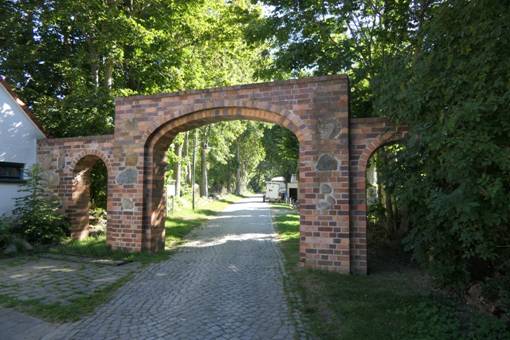Klášterní brána, sice v místech zaniklého cisterciáckého kláštera (viz plánek), ale vzniklá až po jeho