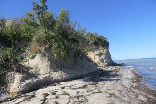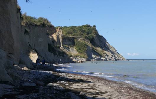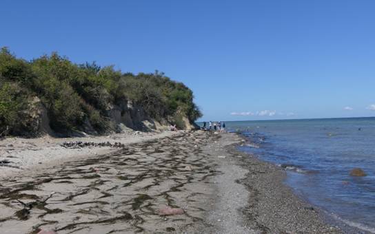 duny a na východu mokřady. Pobřeží písečné, útesovité