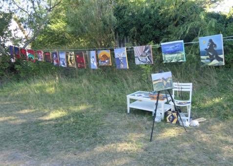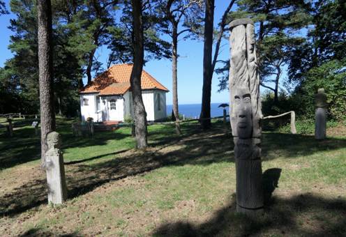 galerie dřevěných soch (schodiště odtud na pláž toho času uzavřeno)