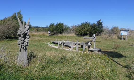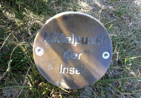 vřesoviště se ukrývá malý patník, označující střed ostrova