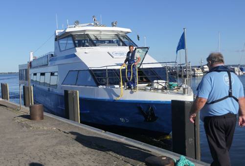 se dá dostat lodí do všech tří přístavů na ostrově. Obvykle jezdí osobní lodě,