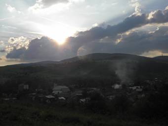 městu, nad státním statkem s bučícími a cinkajícími kravami. Pěkné klidné místo