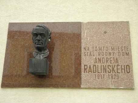 buditele, jazykovědce a žurnalisty Andreje Radlinského severně od náměstí