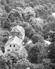 vede náhon na mlýn, je napájen oběma potoky. Nejstarší západní budova pochází z