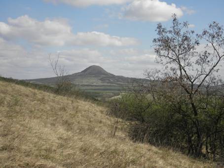 Českého středohoří, sedlem spojen se sousední Ranou. Ve vrcholové plošině
