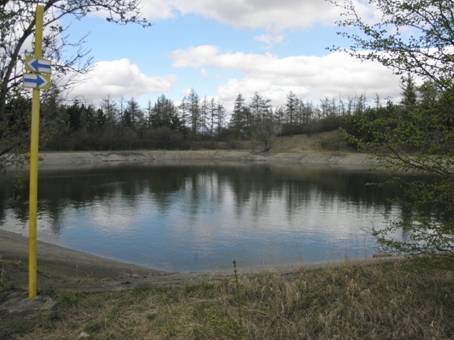 (jihozápadně od vlastního vrcholu) osmiúhelníková vodní nádrž, která zde byla
