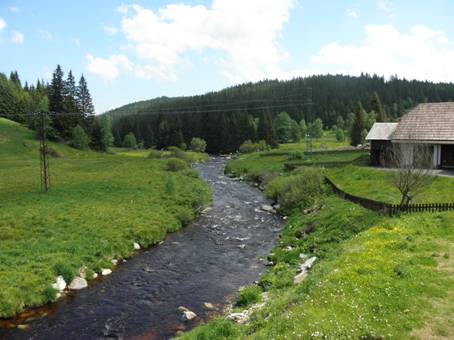 potok těsně před svým soutokem, vytvářejícím řeku Vydru (červen 2011)