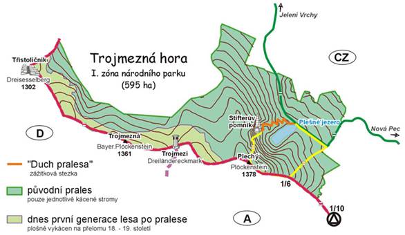 plán Trojmezenského pralesa (www.npsumava.cz)