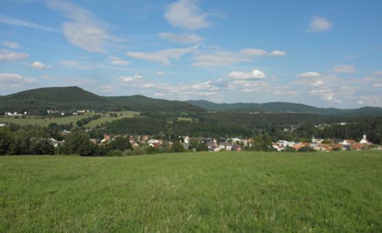 Zalesněný vrch jihozápadně nad Vyšším Brodem (